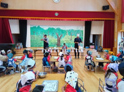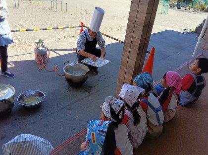 今日は、楽しみにしていた園長コックがあり、すいとん作りを行いました。グループのお友だちと協力しながら一人ずつ、お仕事も責任を持って行う姿がありました。小麦粉を混ぜる際には、「もちもちして気持ち良いなー」と話す子もいました。また、「この大きいすいとん入れたらすぐお腹いっぱいになっちゃうかも!」と期待を膨らませながらすいとんを運び、茹でる様子をみる子どもたちがとても可愛らしかったです。出来上がったすいとんを「おいしい!」ととても喜んで食べる姿があり、たくさん作ったすいとんもおかわりをして全て完食できました!