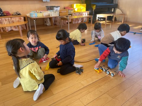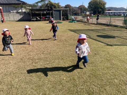 登園後、室内で電車遊びをしました。今日はポカポカいい天気で動物ランドへお散歩に行ってからわんぱく広場で遊びました。芝生の上でのびのび遊び、鬼ごっこをする子、登り棒に挑戦する子、落ち葉を集めて遊ぶ子など思い思いの遊びができました。金柑を収穫し、試食しました。「美味しい」「もういらない」とさまざまな意見がありましたが、今の季節ならではの経験を大切にして参ります。風邪が流行ってきていますので体調管理をお願いします。◯たんぽぽ組 担任◯