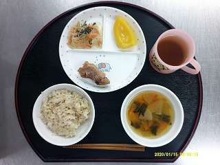 ・ごはん・鶏肉のマーマレード焼き・チャプチェ・桃缶