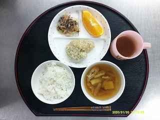 ・ごはん・鶏肉の香草パン粉焼き・チャプチェ・オレンジ