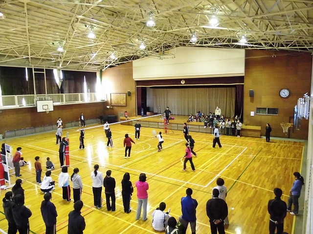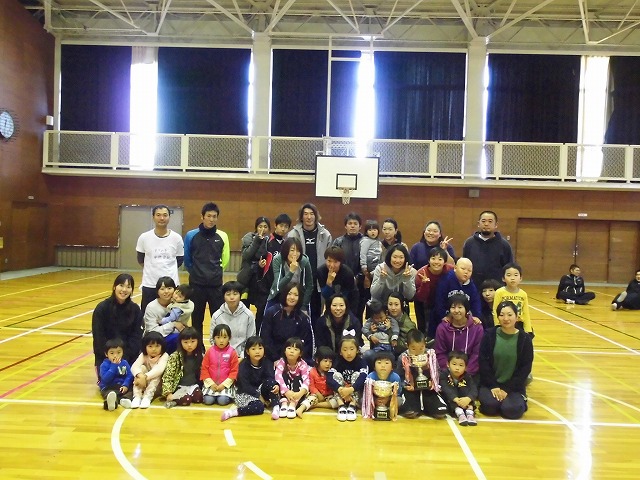 新里中央小学校体育館で ソフトバレーボール大会が行われました。のびのび幼稚園、白ゆり幼稚園、すぎの子幼稚園、おおぞら保育園の4チームで対戦。