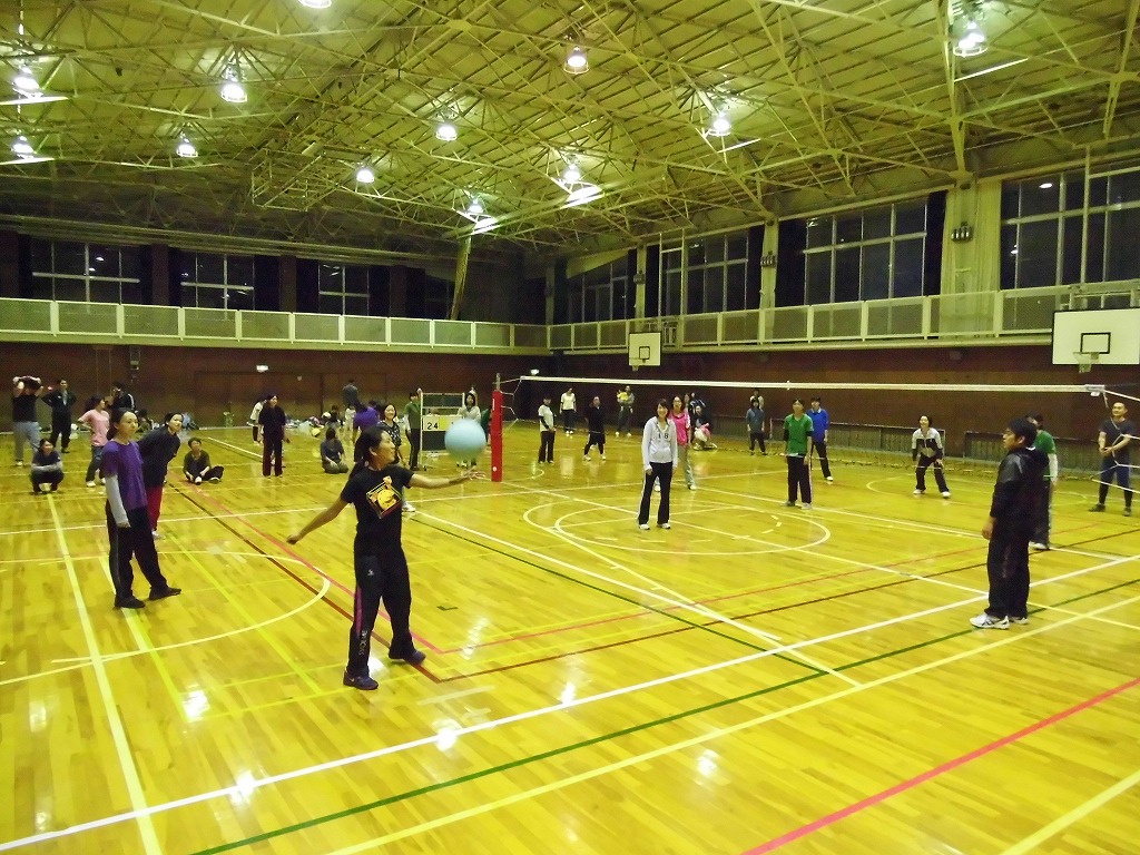 からっ風が吹き始めた27日の夕刻、ソフトバレー大会の練習が行われました。