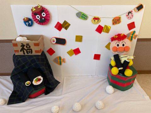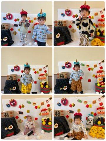 ふれあいの森フォトコーナーのママさん達が、「節分フォト」のコーナーを設置してくださいました。鬼さんに変身できる角のついたカチューシャや、鬼のパンツもありますよ!