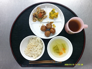 ・ごはん・鶏肉のマーマレード焼き・ジャーマンポテト・ほうれん草とひじきのサラダ