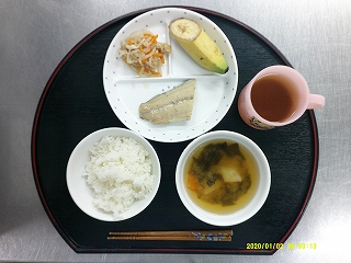 ・ごはん・鰆の香味焼き・切干大根の煮物・バナナ