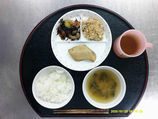 ・ごはん・鯖の塩焼き・高野豆腐の煮物・ほうれん草とひじきのサラダ