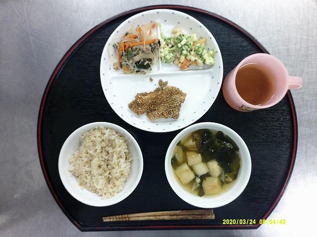 ・ごはん・鶏肉のごま焼き・チャプチェ