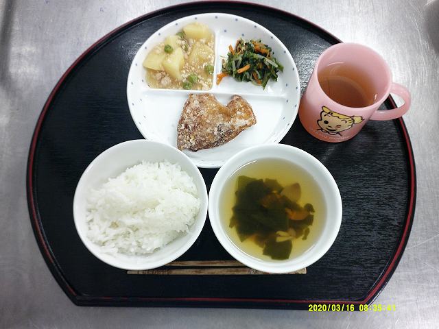 ・ごはん・モロの竜田揚げ・じゃがいものそぼろ煮