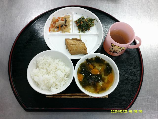 ・青菜の磯和え・じゃがいもとワカメと人参のみそ汁