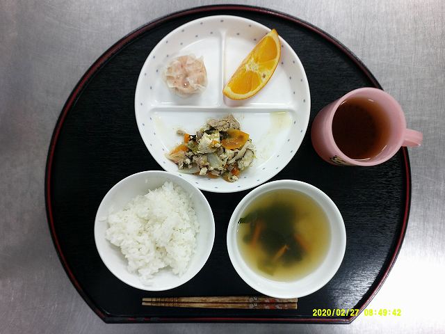 ・ごはん・肉豆腐・海鮮シュウマイ・オレンジ