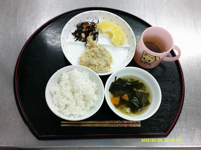 ・ごはん・鶏肉の香草パン粉焼き・ひじきの煮物