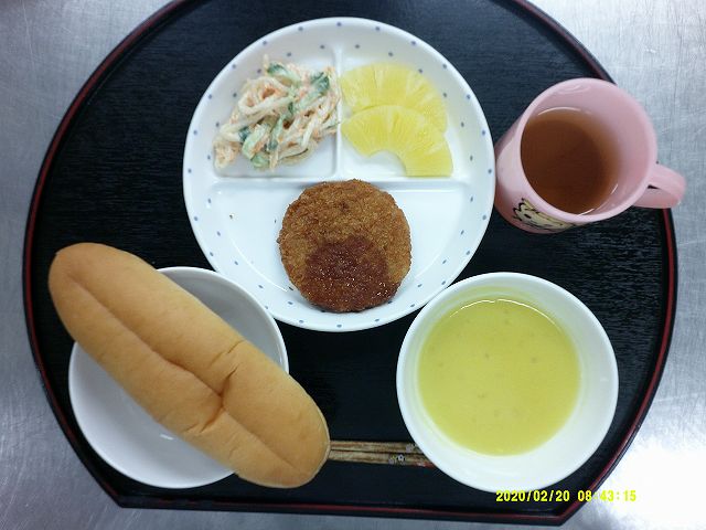 ・コッペパン・ハムカツ・スパゲッティサラダ・パイン缶