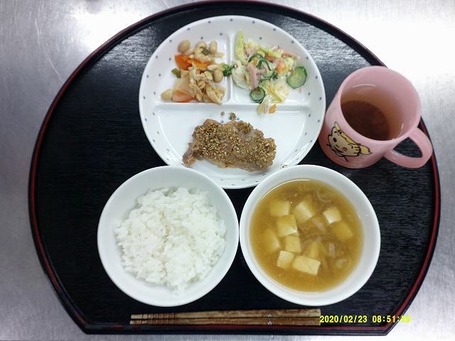 ・ごはん・鶏肉のごま焼き・五目豆煮