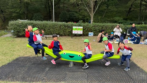 今日は避難訓練でした。タイヤ山で遊んでいる最中でしたが、放送や先生の話を聞き、上手に避難できていました。その後は、ちびっの広場で遊んだり、わんぱく広場で遊んだり、うさぎと触れ合ったりと、広い範囲で遊ぶことができた子どもたち。みかんを収穫してお昼に食べると「すっぱいけど、美味しい」と喜んでいました。今後もたくさん体を動かして遊べるよう関わって参ります。◯たんぽぽ組担任◯