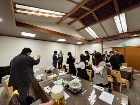 後の懇談会(レセプション)では食事をしつつ他学舎の方々とも会し、ごあいさつから近況など横のつながりを深めていきます。