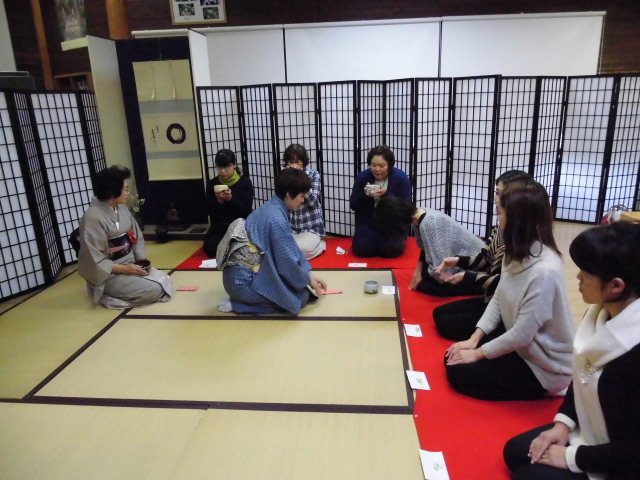 平成25年度2回目サークル活動はお茶会を開催しました。大川久子先生を講師にお迎えして、いつもの図書館がまるで茶室の様に模様替えされ、緊張感漂う中で行われました!