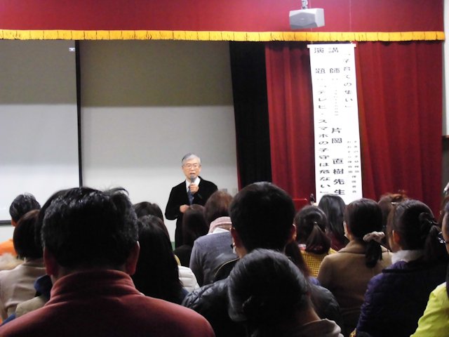 演題は「テレビ・スマホの子育ては危ない」
