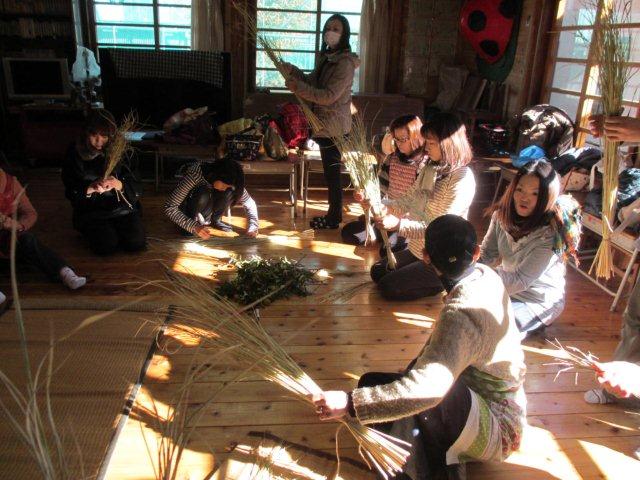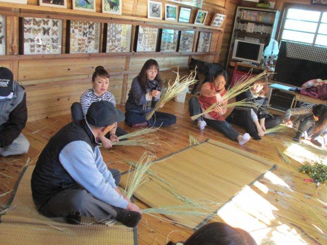 12月12日、なんだろう館にて「しめ縄作り」を行いました。栄作先生、藤生先生、萩原先生にお願いし、まずは見本を見せていただきましたが、その魔法のような手さばきに一同びっくり。熟練の技のすごさを目の当たりにしました。