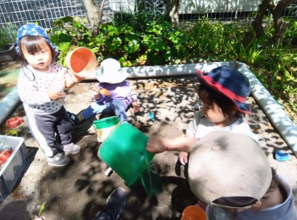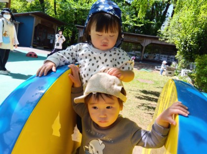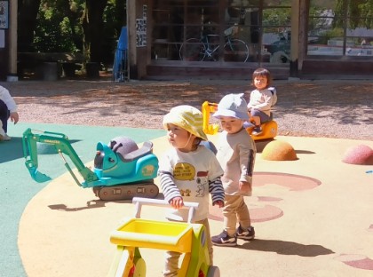今日は支援センターへ遊びに行きました。いろいろな遊びを楽しんだひかり組さん。車のおもちゃでは、音楽が流れるとリズムに合わせて手をたたいて大喜びでした。砂場では、型作りをしたものを壊す遊びが盛り上がっていました。すべり台では、うえに乗って「おーい!」と喜んでいました。それぞれが好きな遊びを見つけることができました。今後も、たくさんの遊びを楽しめるよう活動を計画していきます。〇ひかり組担任〇