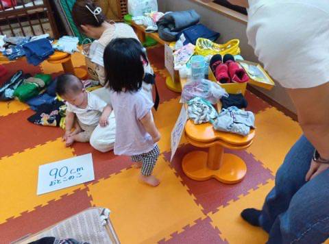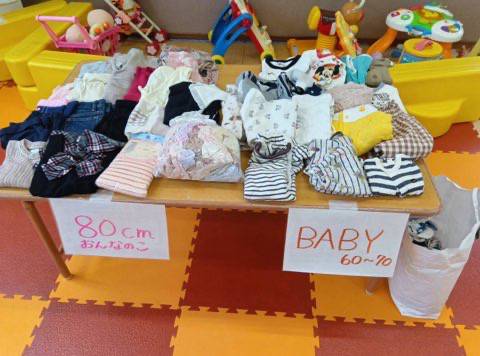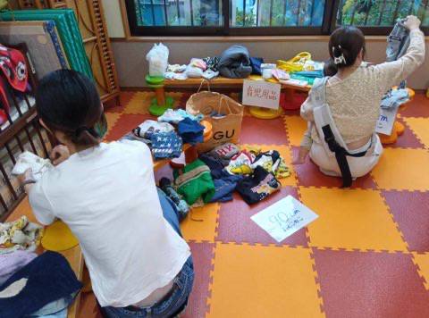 当日はあいにくのお天気でしたが、沢山の親子さんが遊びにきてくださいました。お部屋に沢山並べた衣類や育児用品を皆さんじっくり選んでいましたよ。初来所の親子さんもいらっしゃいましたが、「沢山着用できる洋服があって、とっても助かります」と喜んでいました。これからも、SDGsを取り入れながら皆さんの育児を応援していきます。