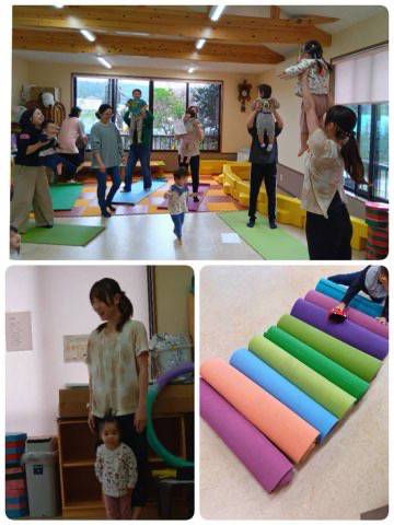 最後にママエクササイズ。お友だちは好きなおもちゃをみつけ、お友だちや先生と関わって遊んでいました。 ママは日々の子育て疲れの肩や腰をほぐして、ヨガマットの上で大きく深呼吸できたかな?1日1回、大きく肩を回して深呼吸してみてくださいね。