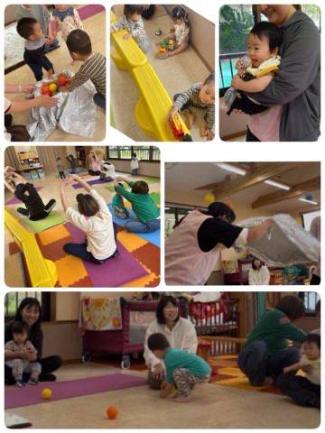初めに「手遊びうた」お子さんをお膝の上に乗せて、幸せなら手をたたこう、パンダ・うさぎ・コアラ をしました。