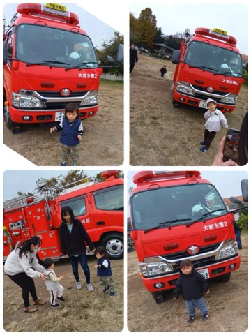 ふれあいの森のあんよができるお友だちも、憧れの消防車を近くでみることができて、ママも喜んでいました。