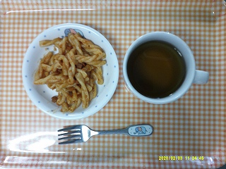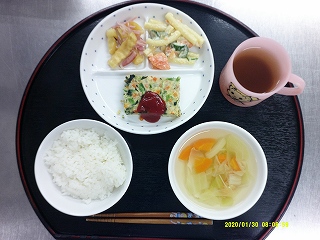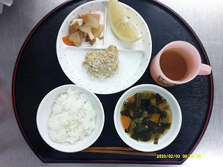 ・ごはん・モロの竜田揚げ・ほうれん草の煮浸し