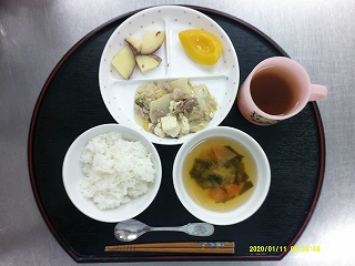 ・ごはん・豆腐と豚肉の旨煮・さつま芋のオレンジ煮