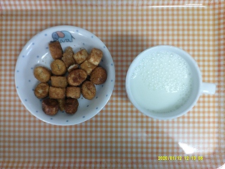 ・麩のラスク(きな粉)・牛乳