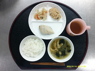 ・ごはん・鰆の塩焼き・レンコン金平・スタミナ納豆