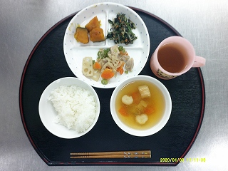 ・ごはん・炒り鶏・かぼちゃの煮物・青菜の磯和え
