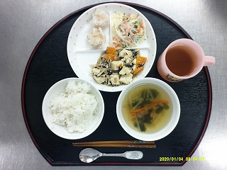 ・ごはん・和風麻婆豆腐・エビシュウマイ・シルバーサラダ