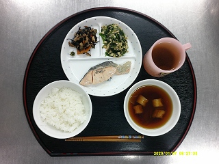 ・ごはん・鮭の塩焼き・ひじきの煮物・青菜の納豆和え