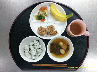 ・わかめごはん・鶏肉のから揚げ