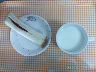 ・ジャムサンド・牛乳