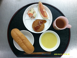 ・コッペパン・ハムカツ・キャベツとハムのサラダ