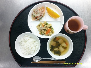 ・ごはん・親子煮・春雨サラダ・オレンジ