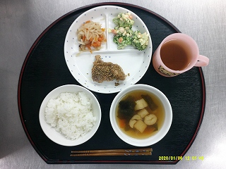 ・ごはん・鶏肉のごま焼き・切干大根の煮物・大豆のコロコロサラダ