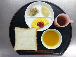 ・食パン・オムレツ・大根ツナサラダ・桃缶