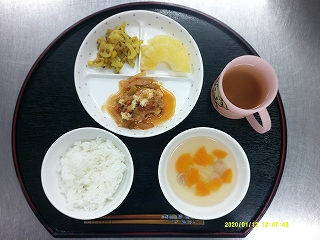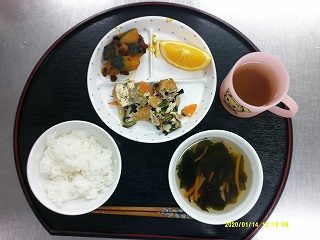 ・ごはん・豚肉と厚揚げのみそ炒め・かぼちゃのいとこ煮