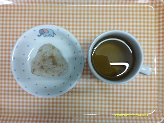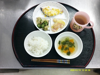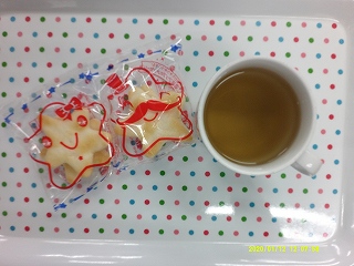 ☆今日のすまし汁はかまぼことワカメと人参が入っていました。