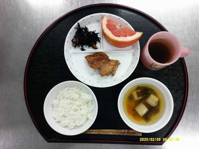 ・ごはん・鶏肉のバーベキューソース・ひじきの煮物・グレープフルーツ