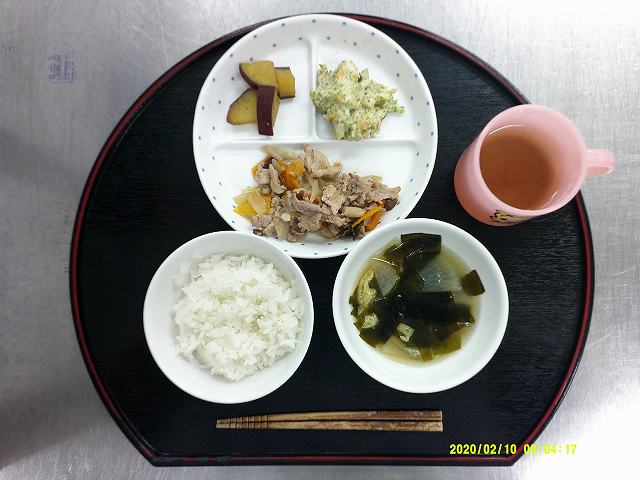 ・ごはん・豚肉の生姜焼き・さつま芋の旨煮