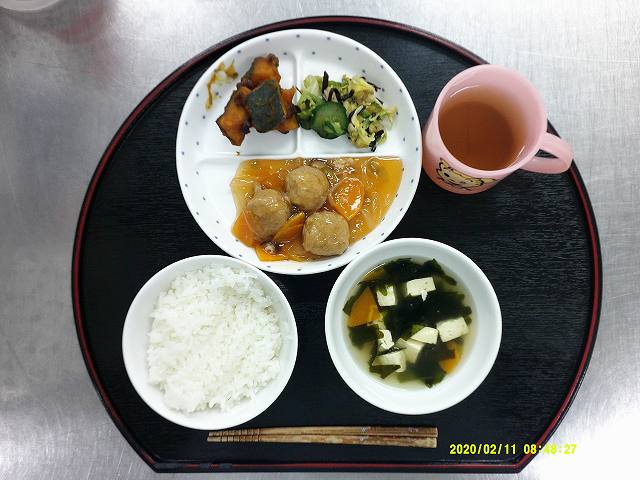 ・ごはん・肉団子の酢豚風・かぼちゃのいとこ煮