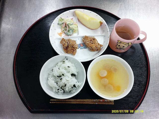 ・わかめごはん・鶏肉のから揚げ
