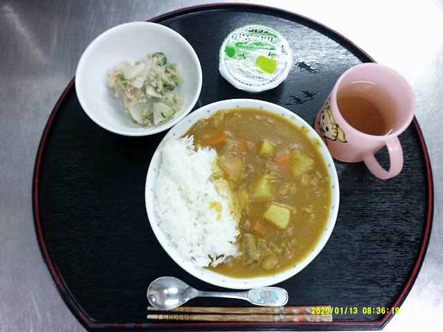 ・ごはん・ポークカレー・大根とツナのサラダ・ゼリー