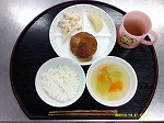 ・ごはん・ハムカツ・マカロニサラダ・桃缶