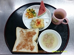 ・食パン・イチゴジャム・チーズハンバーグ・花野菜サラダ