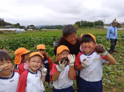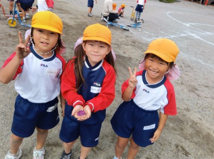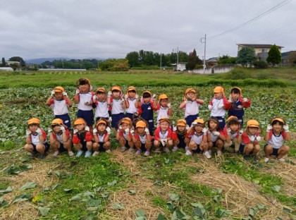 今日は園庭にてお花の実を探したり、スクーターを楽しんでいたほし組さん。清掃安全の日でさつまいもの畑に行き、さつまいもの生長をみるために掘ってみると大きなさつまいもを見つけ「さつまいもある!!」「欲しい!見せて!」と嬉しそうな様子が見られました。作業をした後は、さつまいものつるを使ってリースを作りました。それぞれの好きな大きさに作り「リボンとかつける?」と製作を楽しみにしている様子が見られました。引き続き楽しく生長を見守っていけるよう関わって参ります。